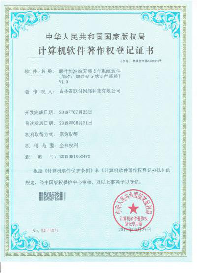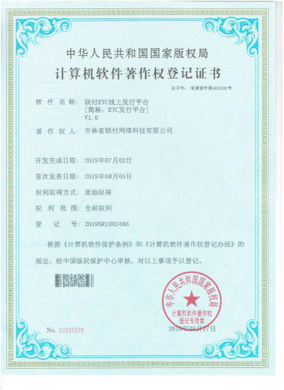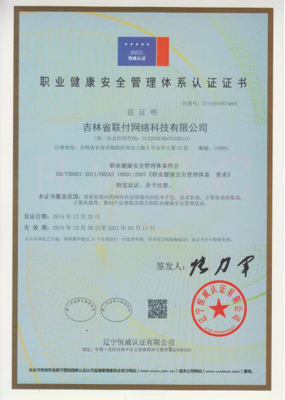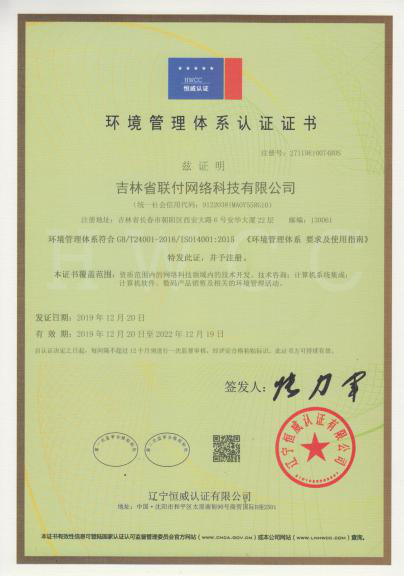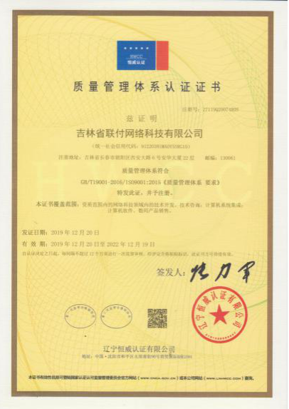 2019年11月,吉林省联付网络科技有限公司荣获高新技术企业